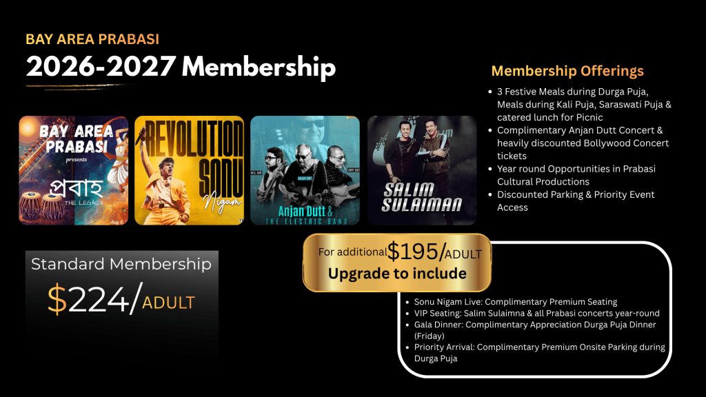 Founded in 1974, Bay Area Prabasi is a membership-based non-profit socio-cultural organization of the Bengalis of the San Francisco Bay Area.Our mission is to promote and contribute to charitable, religious, literary, and educational activities with particular emphasis on the heritage of Bengal.Join us to celebrate the quintessential Bengali occasions, grow a deeper appreciation of our heritage and stand beside others when help is needed.